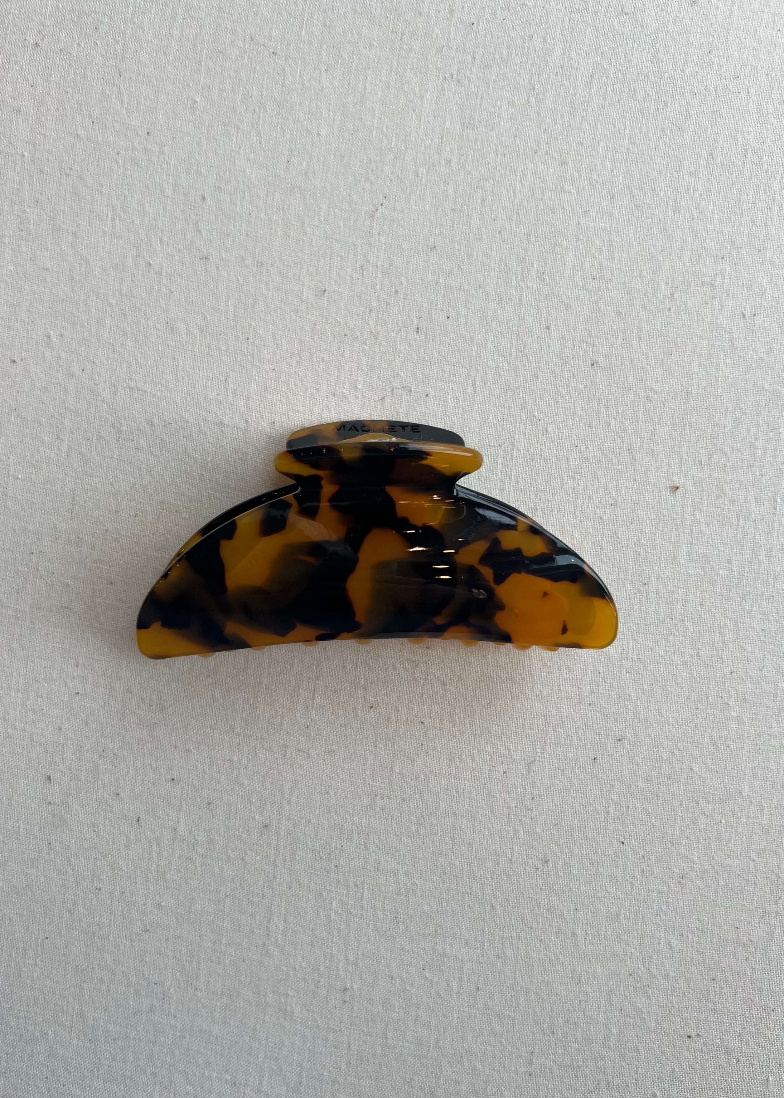 A double-walled hair claw designed to hold medium volumes of hair, handcrafted from Italian acetate with reinforced hardware. Recommended for all hair types and textures.