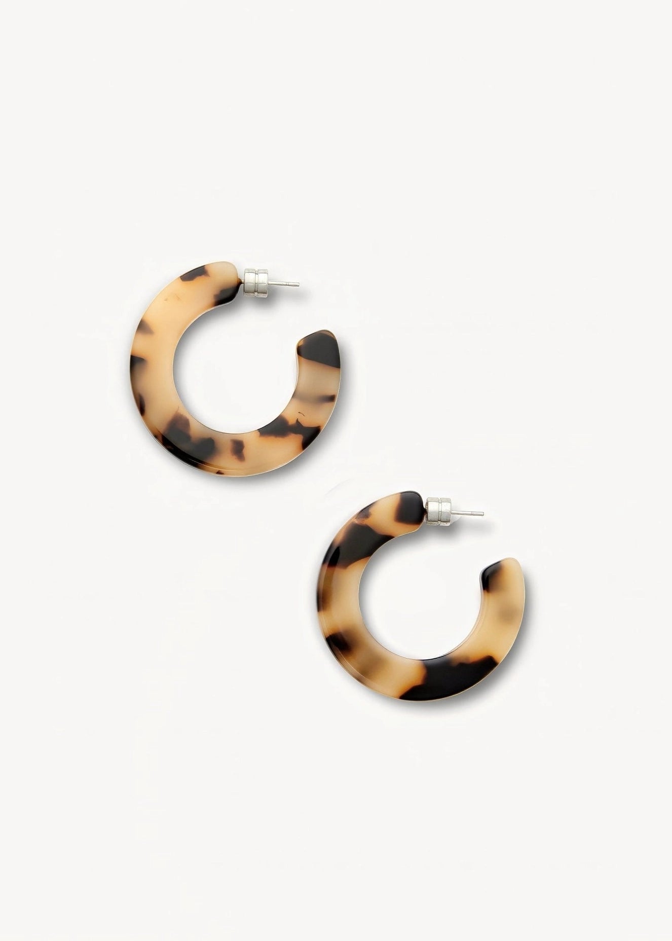 Hoop earrings made from lightweight Italian acetate with engraved barrel backings.