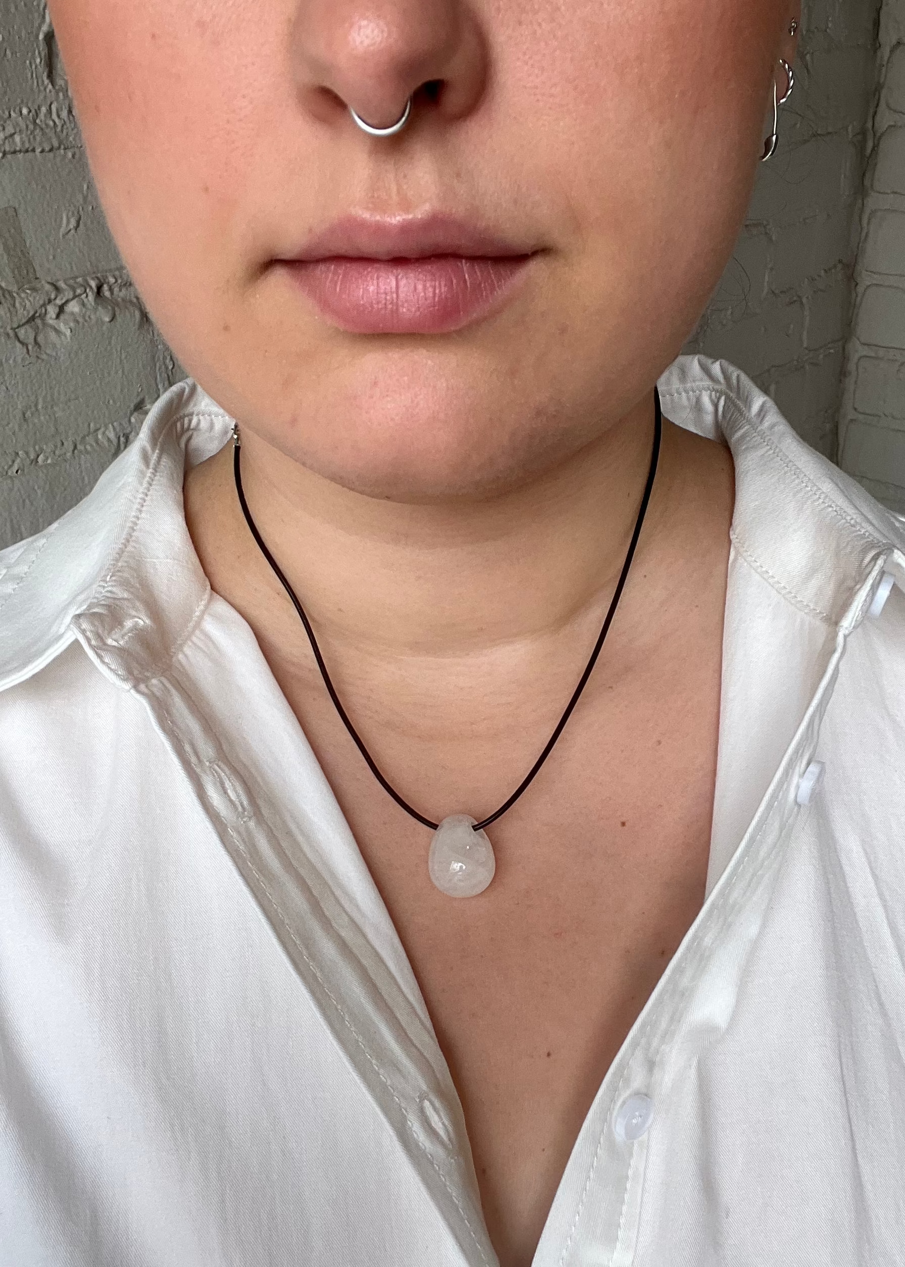 A large 'egg' pendant, hangs freely from a thin, leather cord, secured with a lobster clasp closure made of Sterling Silver. The clean and elegant silhouette draws the eye to the natural depth, tone and shape of the stone. An understated statement, evoking an air of modern simplicity, our Marcel Necklace is effortless and chic and an ideal necklace for any occasion.