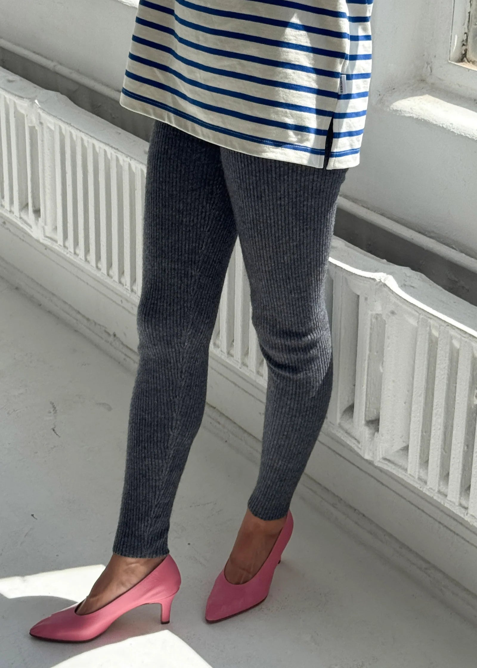 Elevated base layering made effortless. Crafted from an ultra-cozy cashmere blend, these ribbed leggings are designed with a close fit, a high rise, and a supportive wide waistband. Full length and versatile, they’re perfect for layering or wearing all on their own.