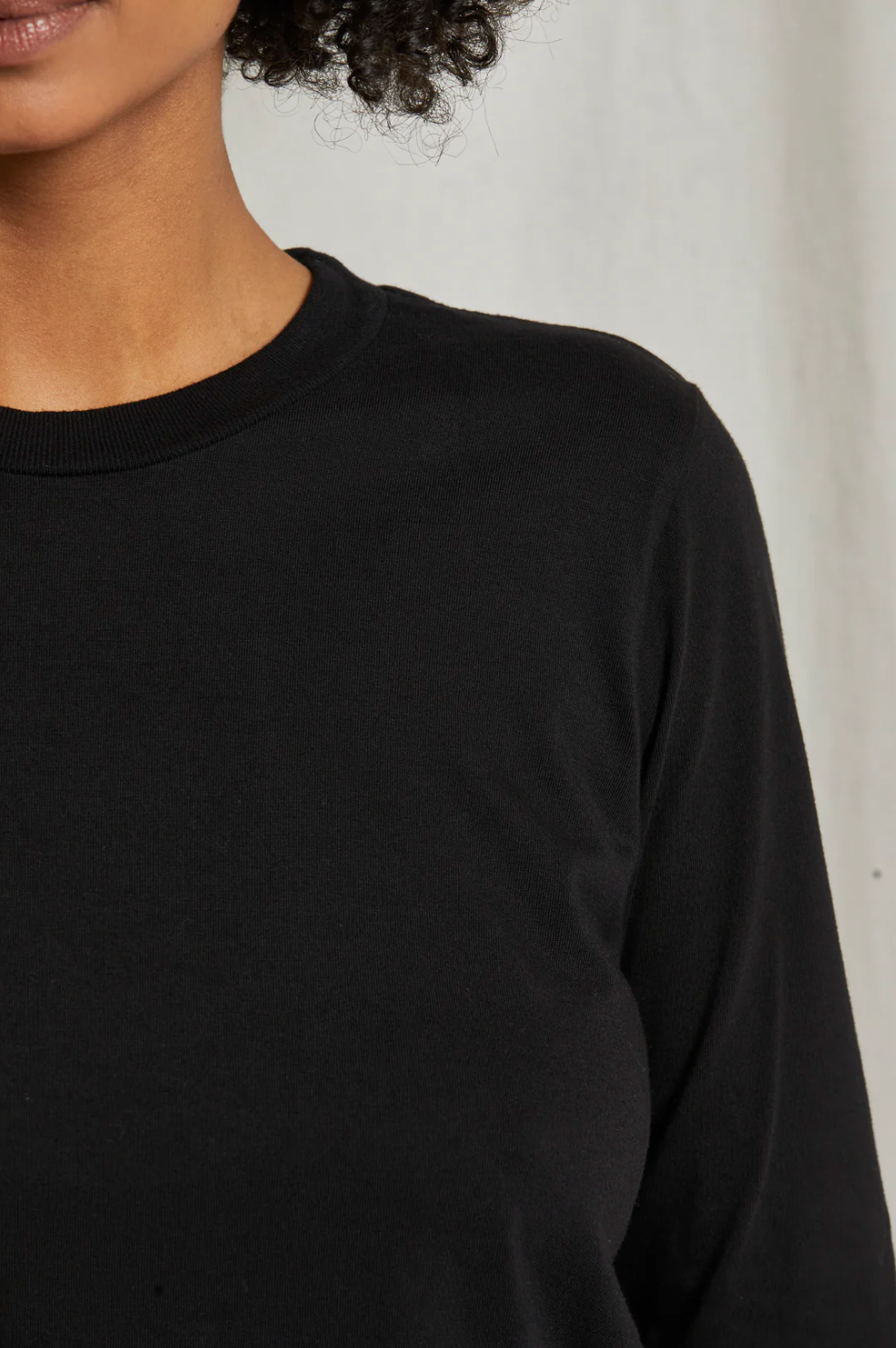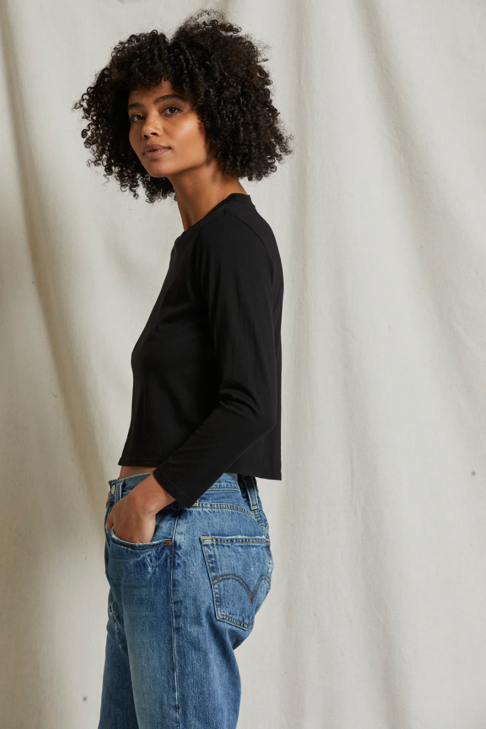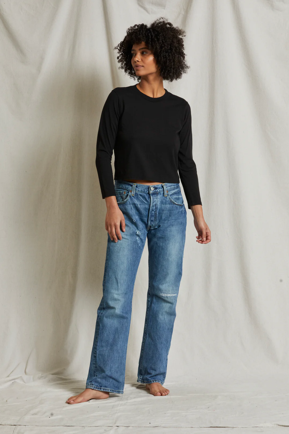 Cut in our soft supima cotton, this long sleeve crew neck tee is the perfect weight to wear all year. Hits at mid waist and features full length long sleeves and a rounded neckline. Fits true to size.
