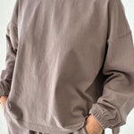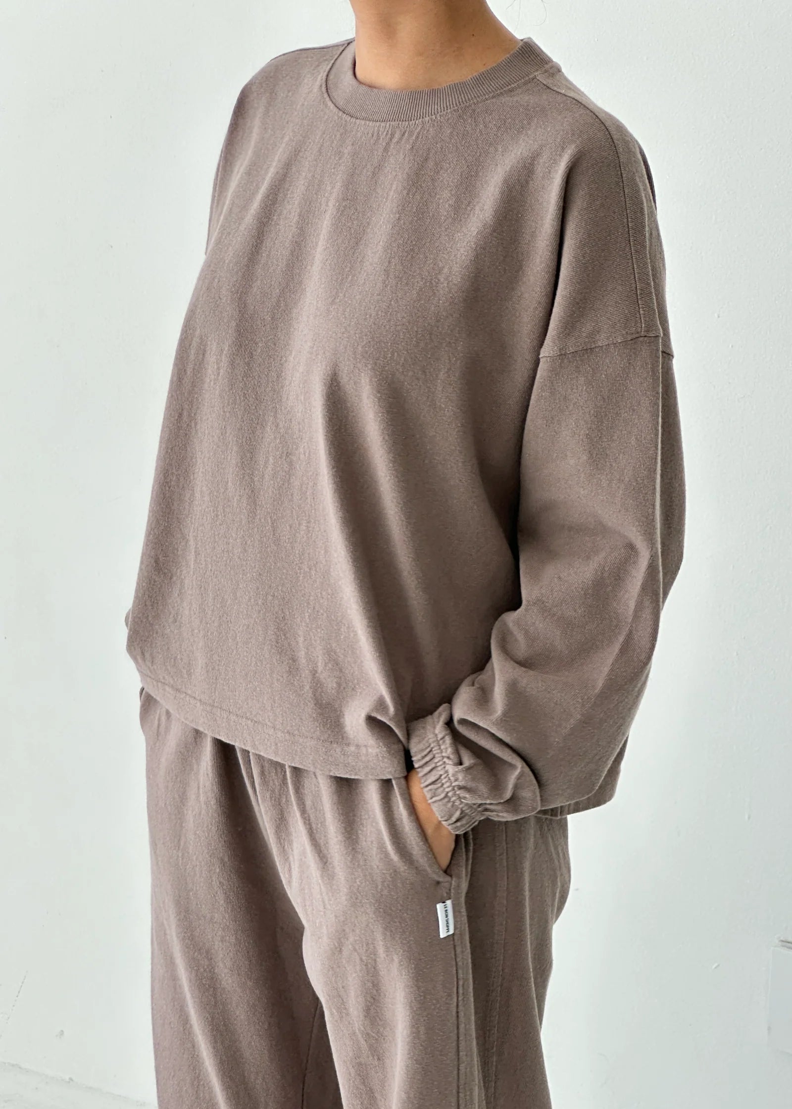 This essential long sleeve tee is made in a gorgeous 100% heavyweight cotton fabric. Super raw textured yet soft and airy! Elastic ruched sleeve opening creates a slight balloon sleeve effect worn down and scrunches up beautifully. This tee is garment dyed and pre-washed for a rich textured look.