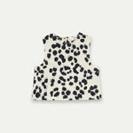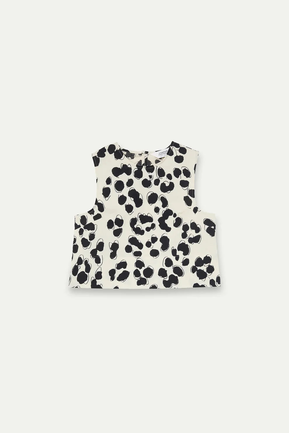 100% cotton top with Dalmatian print. Round neck and sleeveless. Concealed back button fastening.