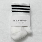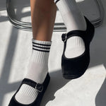 Super comfy ankle crew socks. These beauties feature a triple contrast stripe at the opening and a shorter classic crew sock length. She is a universally quintessential sock.