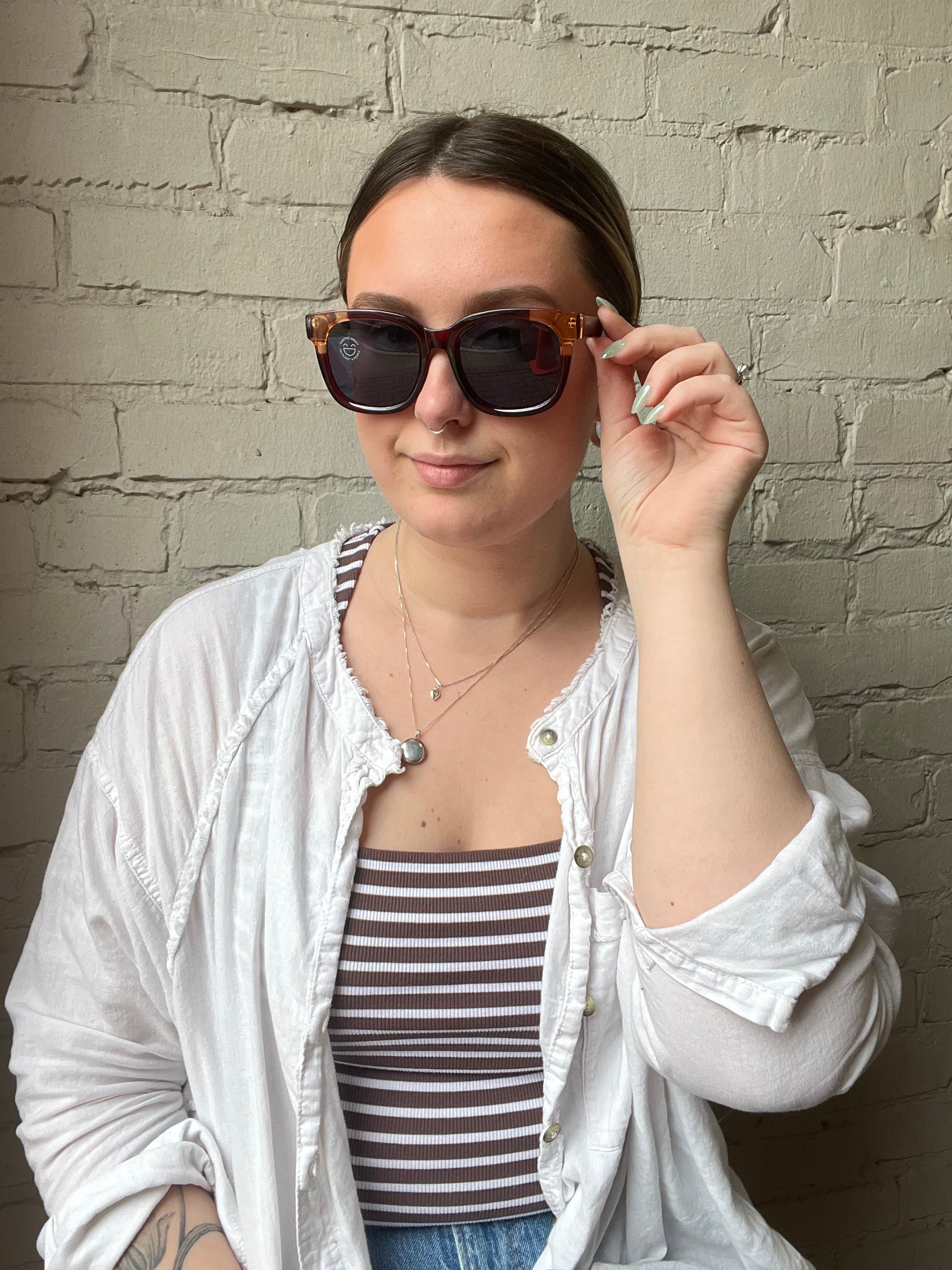 The Sienna introduces an oversized, rectangular design suitable for a wide range of face shapes. Crafted from bioplastic derived from castor beans, it prioritizes sustainability by using 45% less fossil fuels in its production process, providing both style and environmental consciousness.