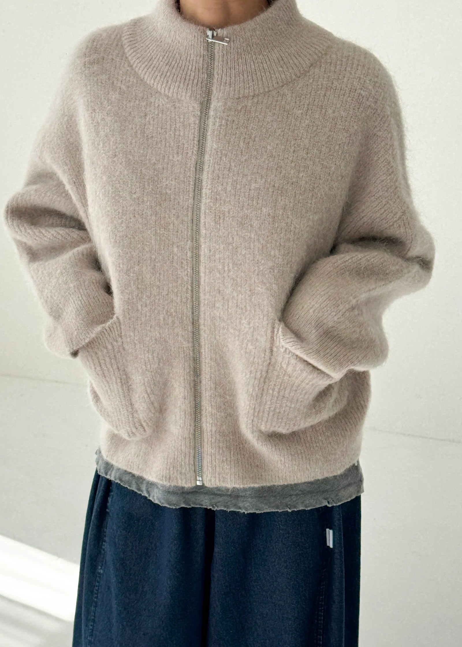 Alpaca Zip Front Jacket - Smoke