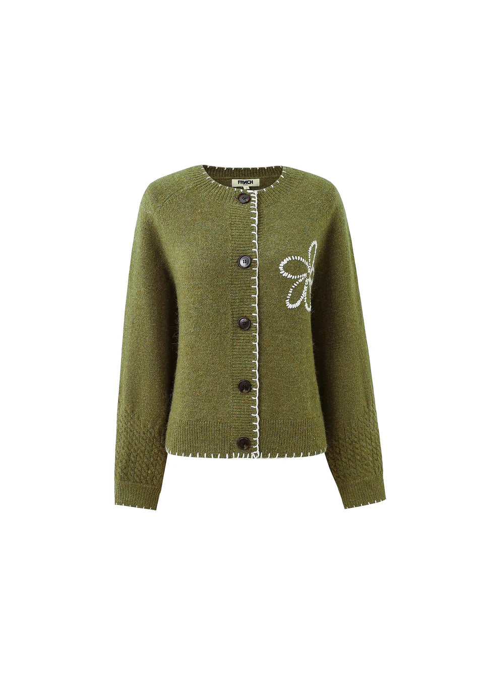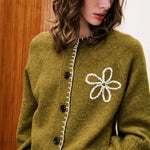 This wool and alpaca blend vest combines timeless elegance with everyday comfort. Featuring a relaxed straight cut and classic round neckline, it's designed to layer effortlessly over your favorite pieces. The contrasting button placket adds visual interest, while delicate ecru flower embroidery on the chest brings a touch of botanical charm. Ribbed finishes at the edges ensure a polished fit. Perfect for transitional seasons, this versatile vest works as well over a dress as it does with casual basics.