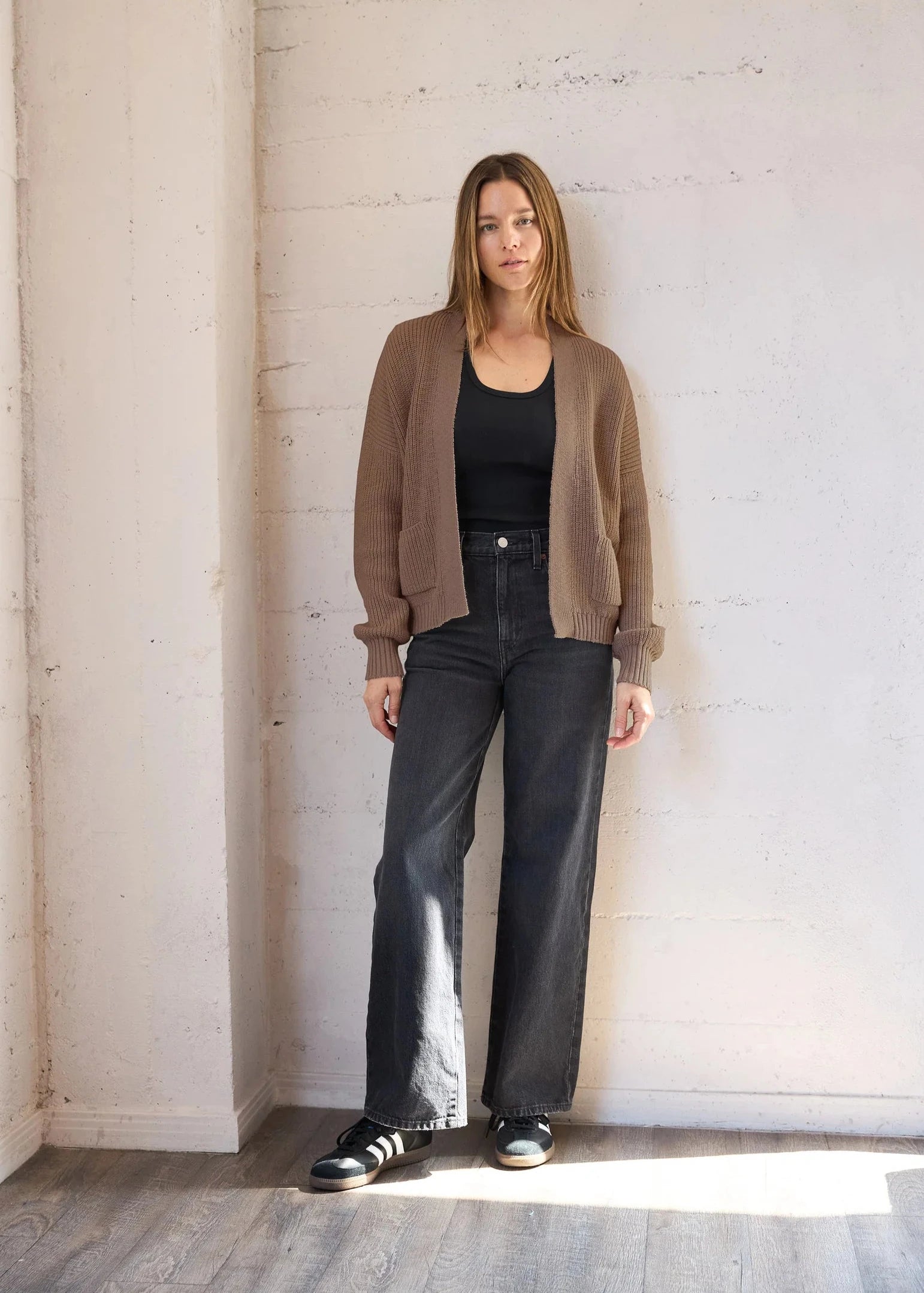 This Easy Cardigan in Acorn offers a relaxed fit and open front design for effortless layering. Featuring convenient patch pockets and ribbed cuffs and hem, this cardigan is both stylish and functional. Stay cozy and chic with this wardrobe essential.