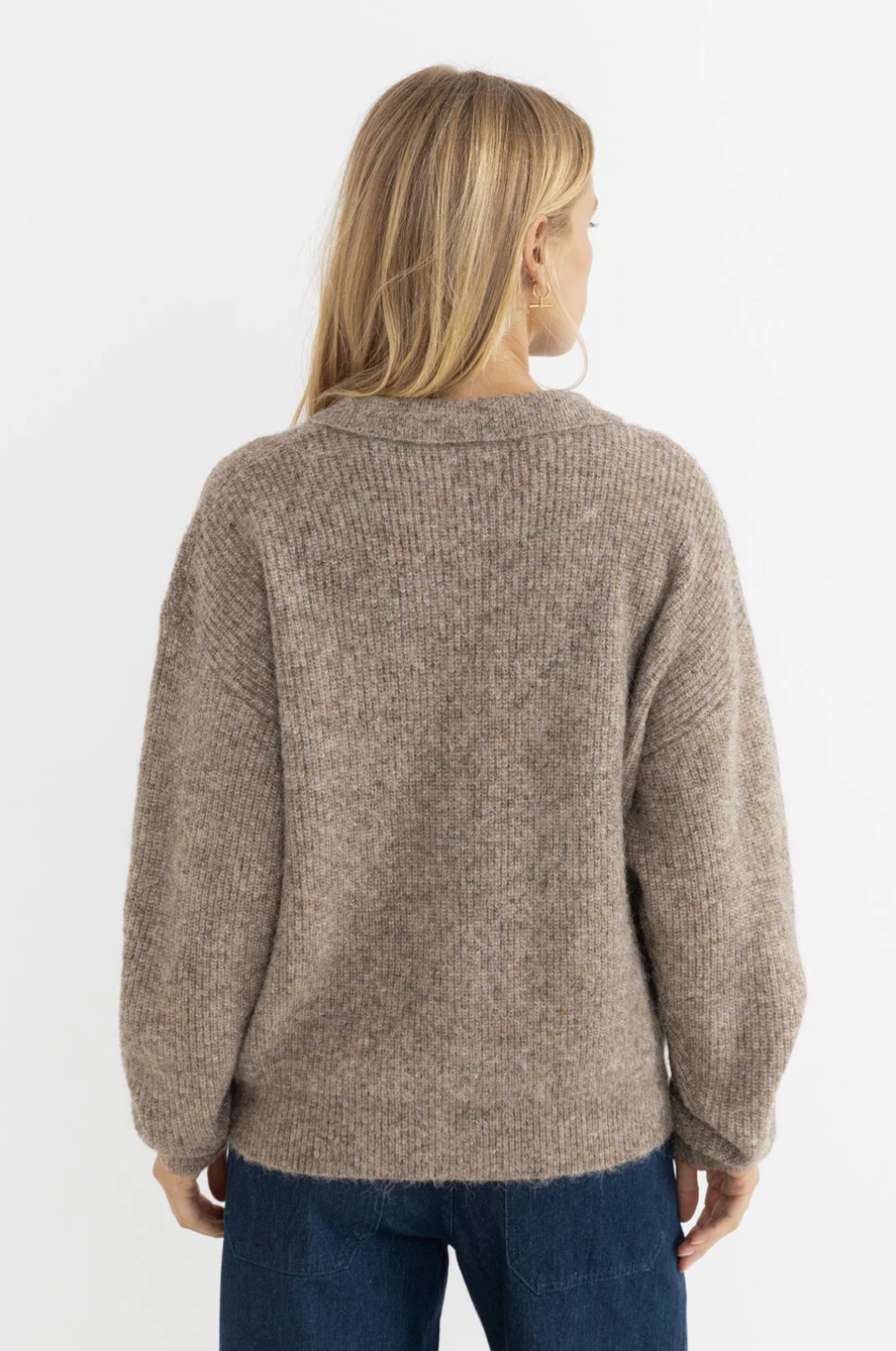The Quinn v-neck collared jumper features a relaxed fit and heavy-weight knit for cozy wear. The slightly oversized silhouette makes it an ideal layering piece for any occasion.