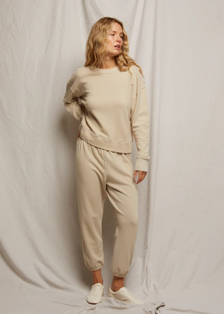 Drop shoulder and easy fit, the lightweight, relaxed vintage french terry creates the most coveted sweatshirt in your collection. it's super soft and plush with a classic sweatshirt fit that hits just below the waist.