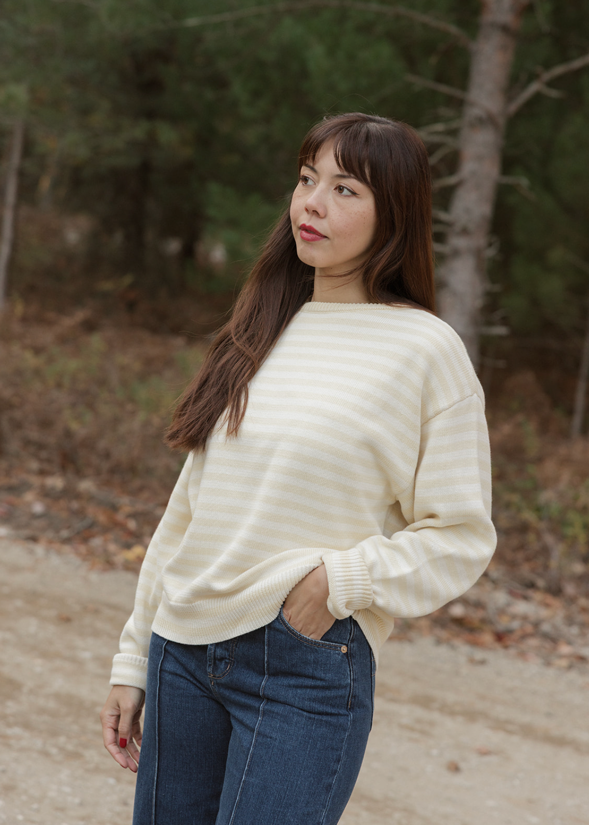 This will be mistaken for a vintage sweater. In the perfect stolen-from-the-back-of-your-dad's-closet fit. Long sleeves with a wide, boxy cut.