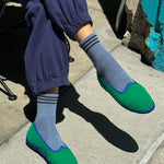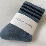 Super comfy ankle crew socks. These beauties feature a triple contrast stripe at the opening and a shorter classic crew sock length. She is a universally quintessential sock.