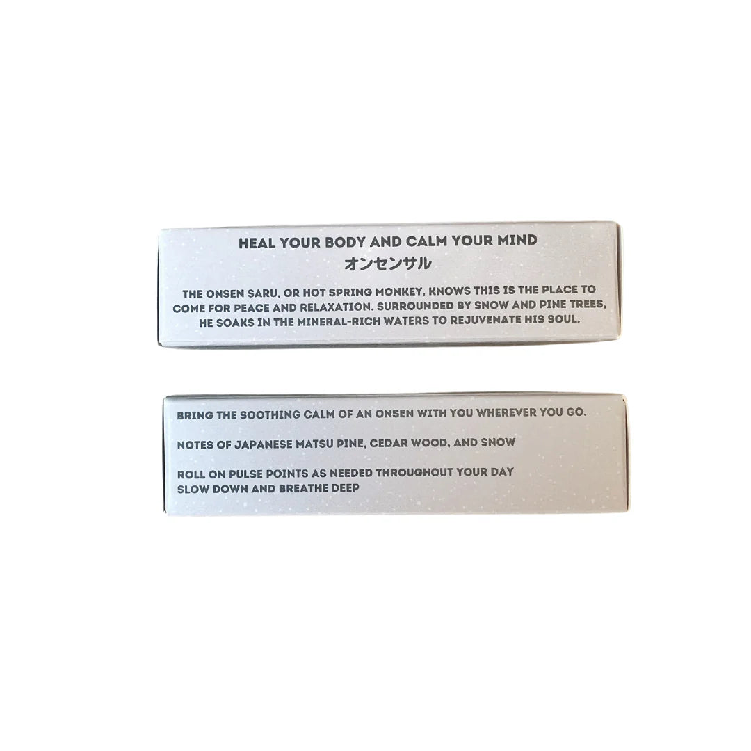 Bring the soothing calm of an onsen with you wherever you go - this signature unisex scent of Japanese Matsu pine, cedar wood, and snow - in a convenient 10ml rollerball vial. Frosted amber glass bottle with bamboo top and individually boxed. This is a preservative-free, phthalate-free formula with no alcohol fixatives which typically contribute to the staying power of traditional perfumes. While the scent may fade faster than synthetic fragrances, this all natural skin scent is meant to be applied often throughout the day whenever a moment of calm is needed.