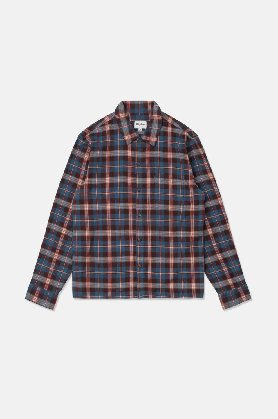 Designed for cooler days, the Kern LS Flannel in Chocolate is crafted from a soft, brushed cotton fabric and washed for a lived-in feel. A timeless layering piece with a relaxed fit, it features a one-piece collar, chest patch pocket, and Rhythm trims for effortless everyday wear.
