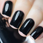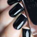 Memento Mori is a super opaque black creme nail polish. This polish is ideal for nail art or as a base color for glitter polishes.