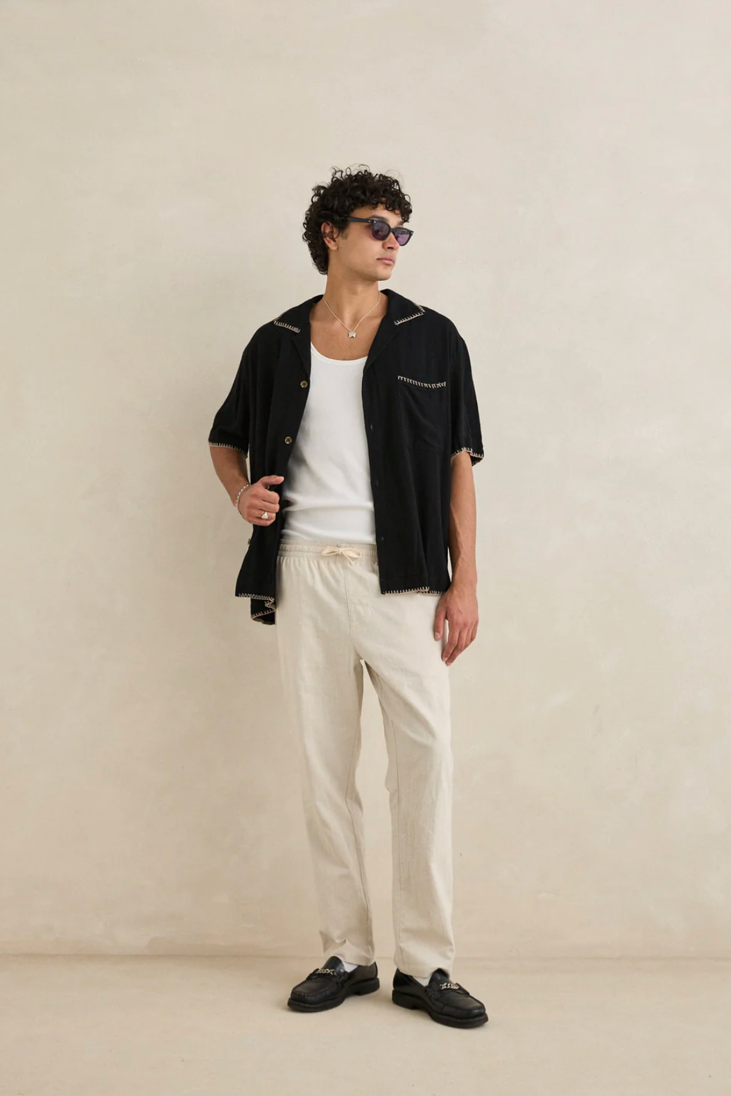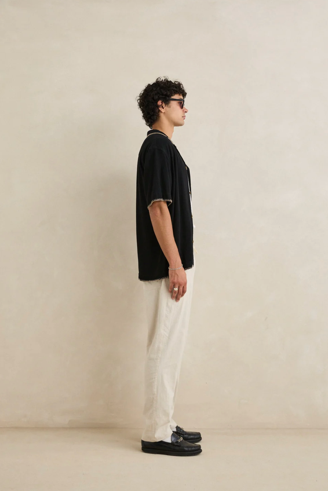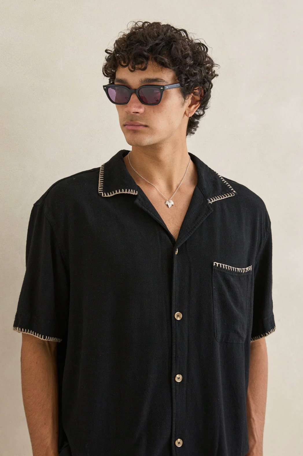 Relaxed through the body with laid-back whip stitch detailing, this short sleeve shirt features a Cuban collar, straight hem, and lightweight finish for everyday styling.