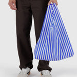 Baggu is an American brand known for its affordable, sustainable bags made from recycled materials. Inspired by the design of a plastic shopping bag, its signature product—the Standard Baggu—is made from ripstop nylon and holds 2–3 times more than a disposable bag. Committed to reducing waste and eliminating single-use plastics, Baggu designs practical, everyday styles using minimal materials to lower costs and fabric waste.
