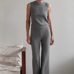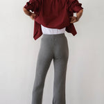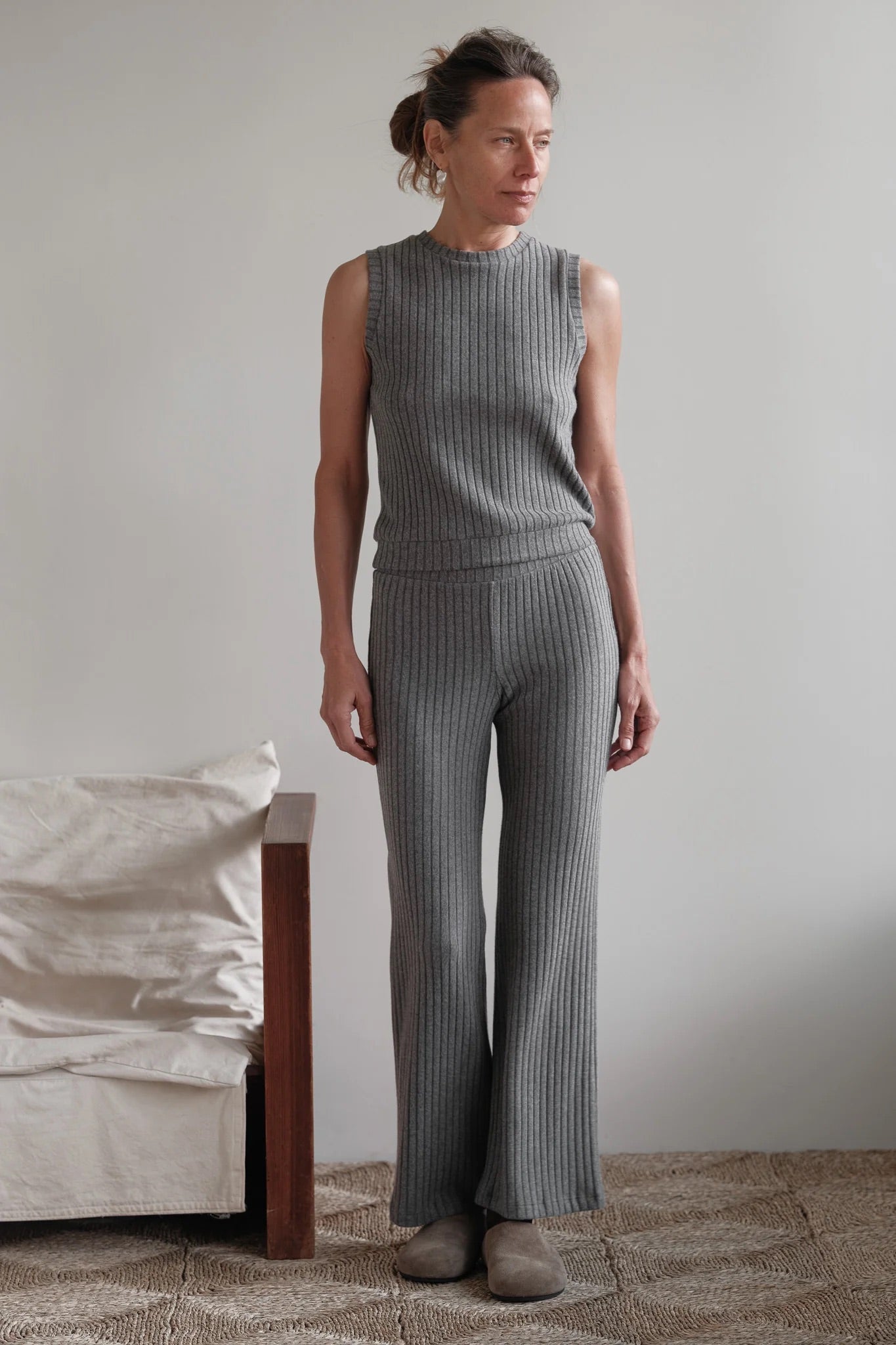 Sweater Rib Kick Flare Pants - Charcoal Grey