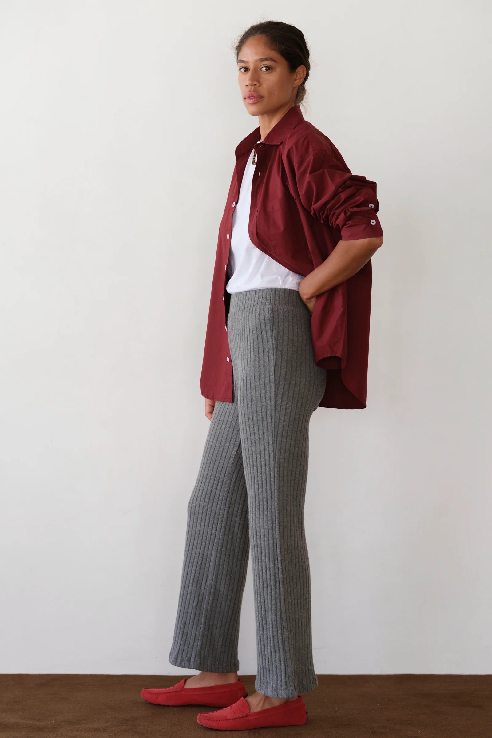 Crafted from ultra-soft sweater rib fabric and mad in LA. Designed with a cropped length, slim fit through the leg, kick flare at the hem, and ribbed texture.